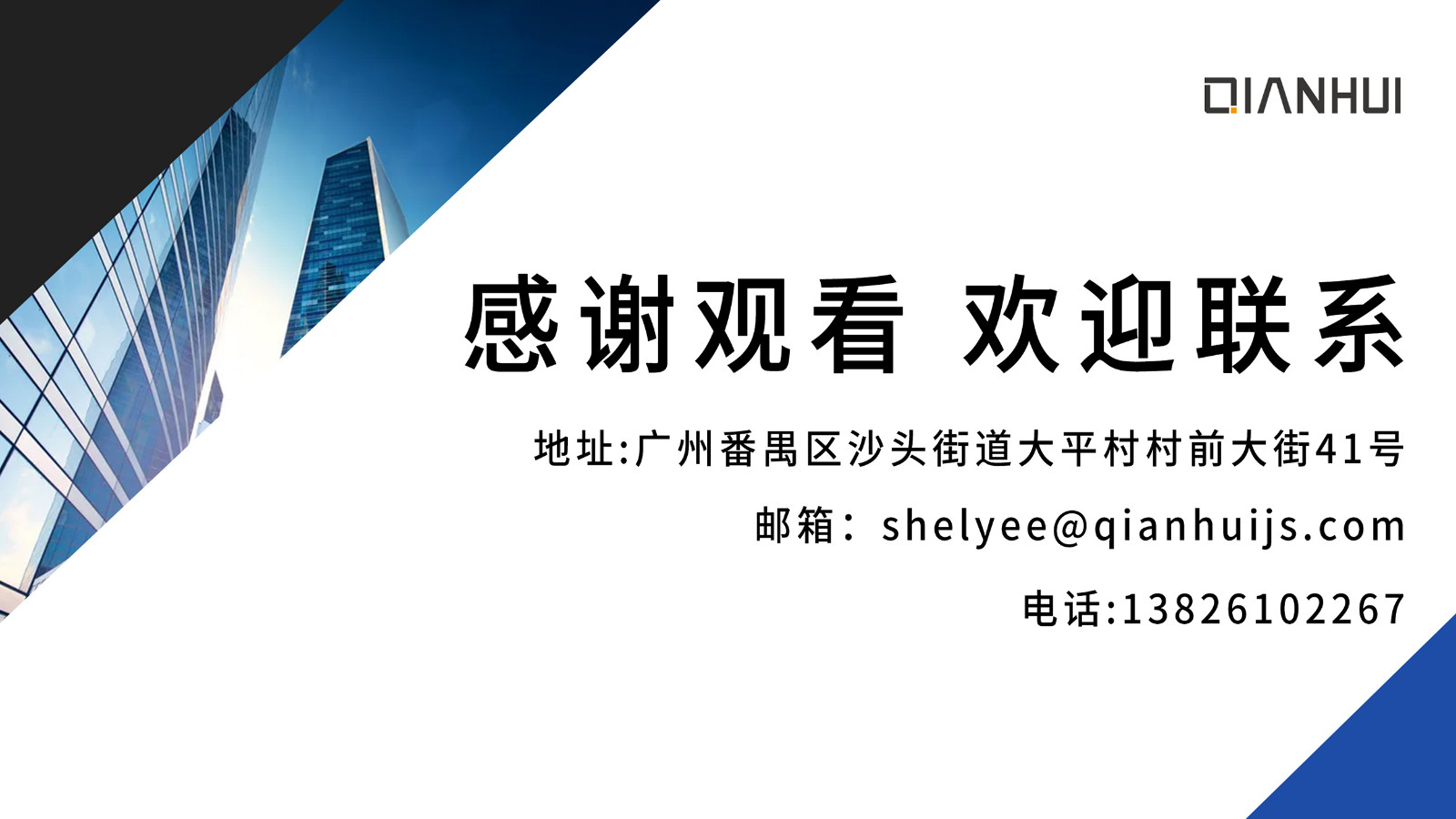 廣州千惠智能科技有限公司 Guangzhou Qianhui Intelligent Technology Co., Ltd. 地址 Address:廣州市番禺區沙頭街大平村村大街41號102號 No. 41, Cunqian Street, Daping village , Shatou Jiedao, Panyu District,511400, GuangZhou, China 郵件/Email ;sales@qianhuijs.com 聯系電話 Contact ;138 2610 2267 香港公司:香港千惠有限公司 HK QIANHUI LIMITED 地址 Address:九龍尖沙咀科學館道14號新文華中心A座9樓917A室 UNIT 917A, 9/F., TOWER A, NEW MANDARIN PLAZA, NO.14 SCIENCE MUSEUM ROAD, TSIMSHATSUI, KOWLOON. 郵件Email: shelyee@qianhuijs.com 電話Contact :00852-3460 5868傳真:傳真:00852-3460 5808